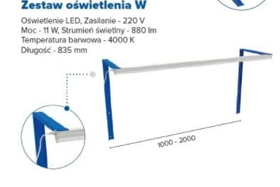 Stół roboczy z ręczną regulacją półek co 50 mm.