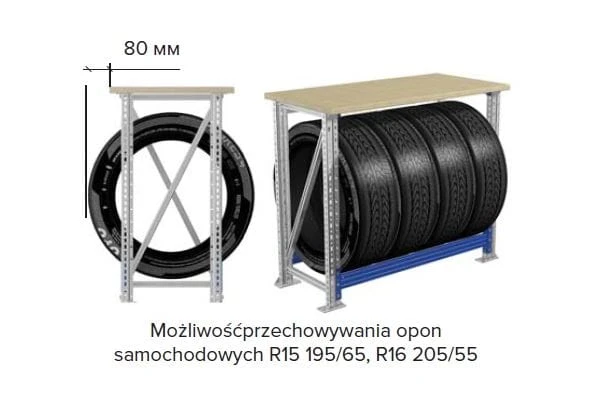 - możliwość przechowywania 4 kół samochodowych 195/65 R15, 205/55 R16