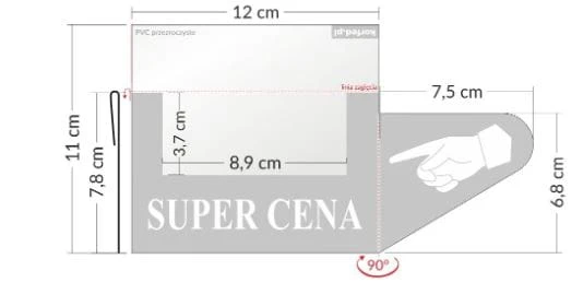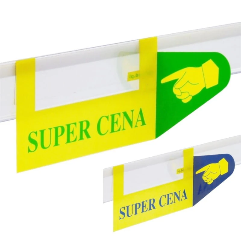 Stopery regałowe, reklamowe SUPER CENA z rączką stosowane do wyróżniania produktów na półce (stoppery półkowe), oznaczania produktów znajdujących się w super cenie.