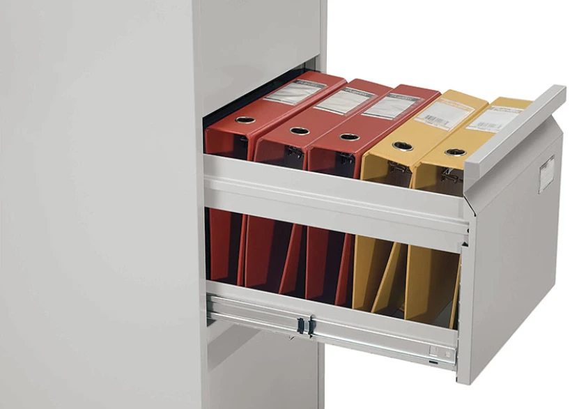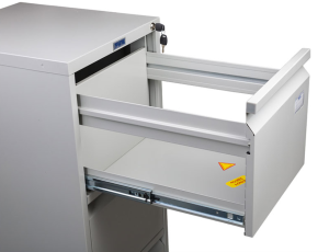 - możliwość jednoczesnego wysunięcia tylko jednej szafy ( wyposażona w urządzenie zapobiegające wywrotce)