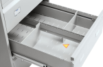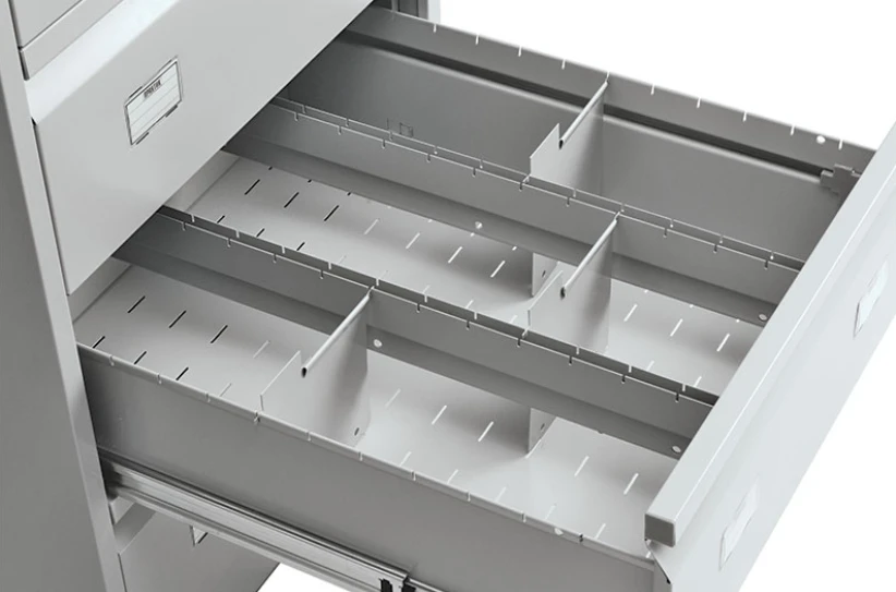 - możliwość jednoczesnego wysunięcia tylko jednej szafy ( wyposażona w urządzenie zapobiegające wywrotce)
