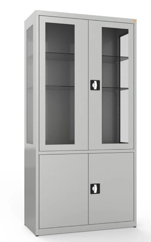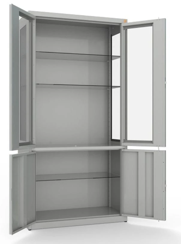Szafa medyczna dwuskrzydłowa, dwudzielna, dwukomorowa, drzwi górne i boki przeszklone MDBW/2s