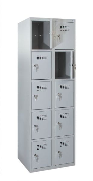 Stabilna konstrukcja z blachy stalowej pokrytej farbą proszkową. Drzwi wyposażone są w wywietrzniki oraz miejsce na identyfikator.