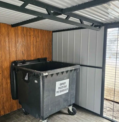 Wiata śmietnikowa MOD 3,6m x 4,5m, wysokość 2,20 - 2,00 m.