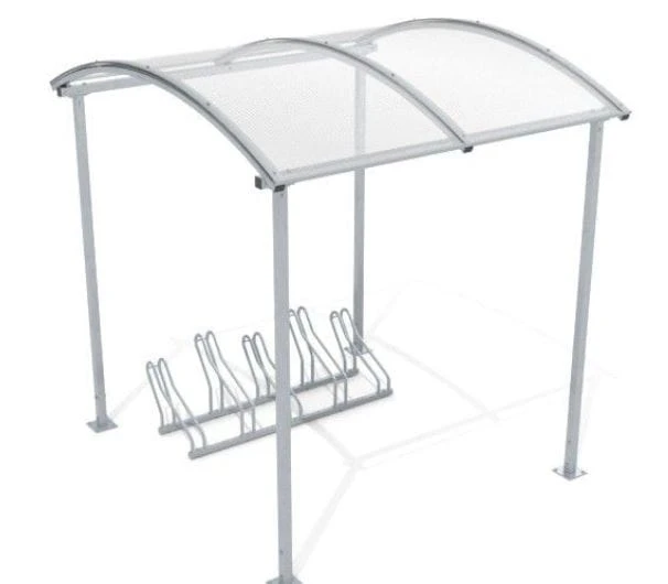 Wiata rowerowa Zorza, zadaszona, na 5 stanowisk rowerowych.