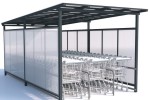 Wiata na wózki sklepowe w wersji 3 - rzędowej. Ścianki wraz z dachem wykonane z poliwęglanu litego. Stal ocynkowana.