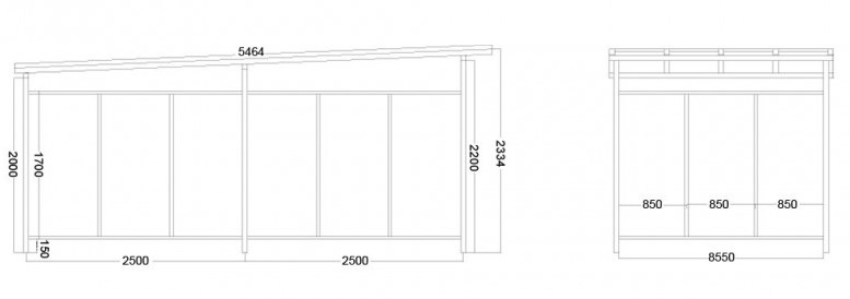 - szerokość wiaty: 2550 mm
