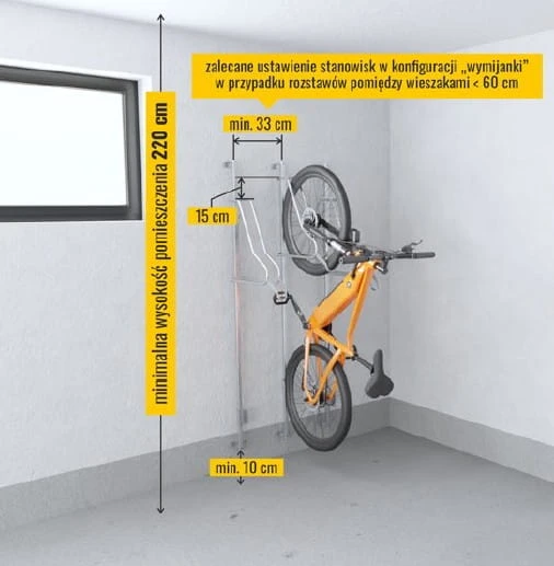 - wyposażenie wieszaka w "gniazda" na tylne koła zapobiegają brudzeniu ścian i stabilizują rower