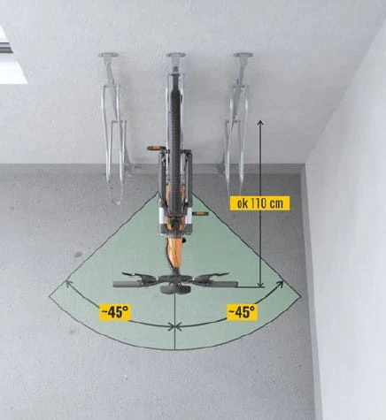 Pozwala na dopasowanie ustawienia stanowiska pod własne preferencje, wieszak jest w pełni regulowany (góra-dół /lewo-prawo). Dodatkowo stanowisko wieszaka można przesuwać w płaszczyźnie poziomej, ułatwia to ściąganie i parkowanie roweru w szczególności gdy zachowane są małe odstępy pomiędzy stanowiskami.