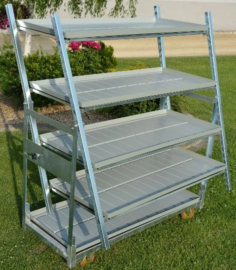 Profesjonalny wózek ekspozycyjno-transportowy z 5 tacami zalewowymi. Ocynk ogniowy, funkcja kaskady, odporność na UV. Zoptymalizuj ROI. Sprawdź na eformula.pl!