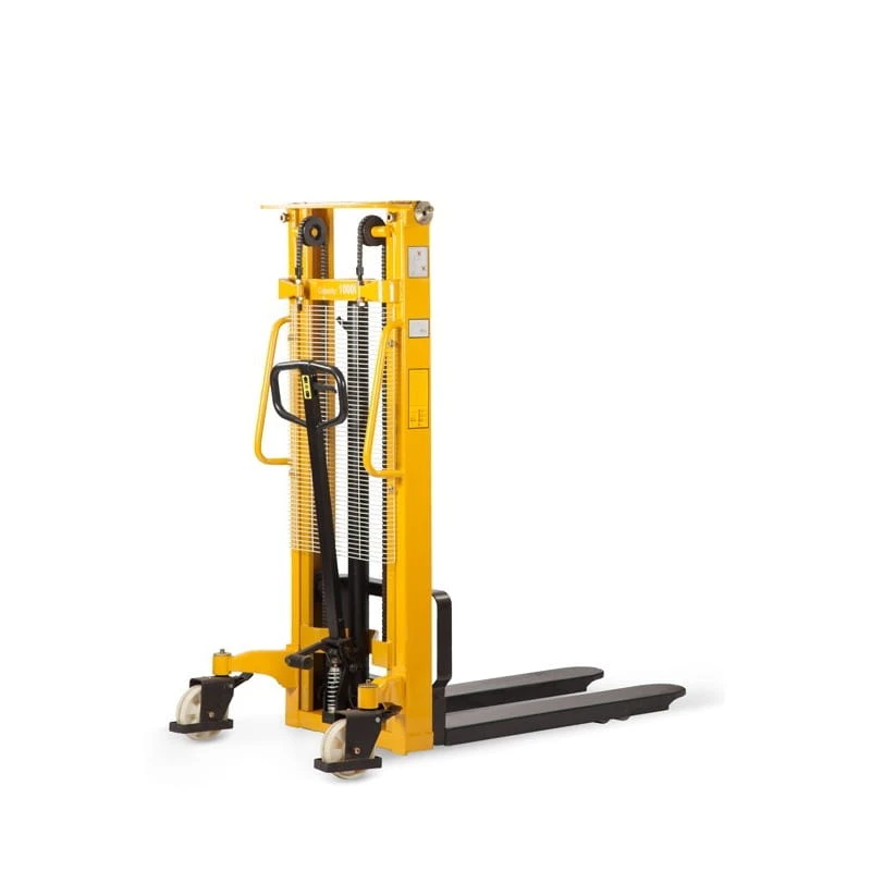 Wózek paletowy, sztaplarka, układarka pozwala na układanie w stosy i przenoszenie palet ekspozycyjnych. To klasyczny wózek podnośnikowy o napędzie ręcznym. Usprawnia obsługę, podnoszenie i transport palet.