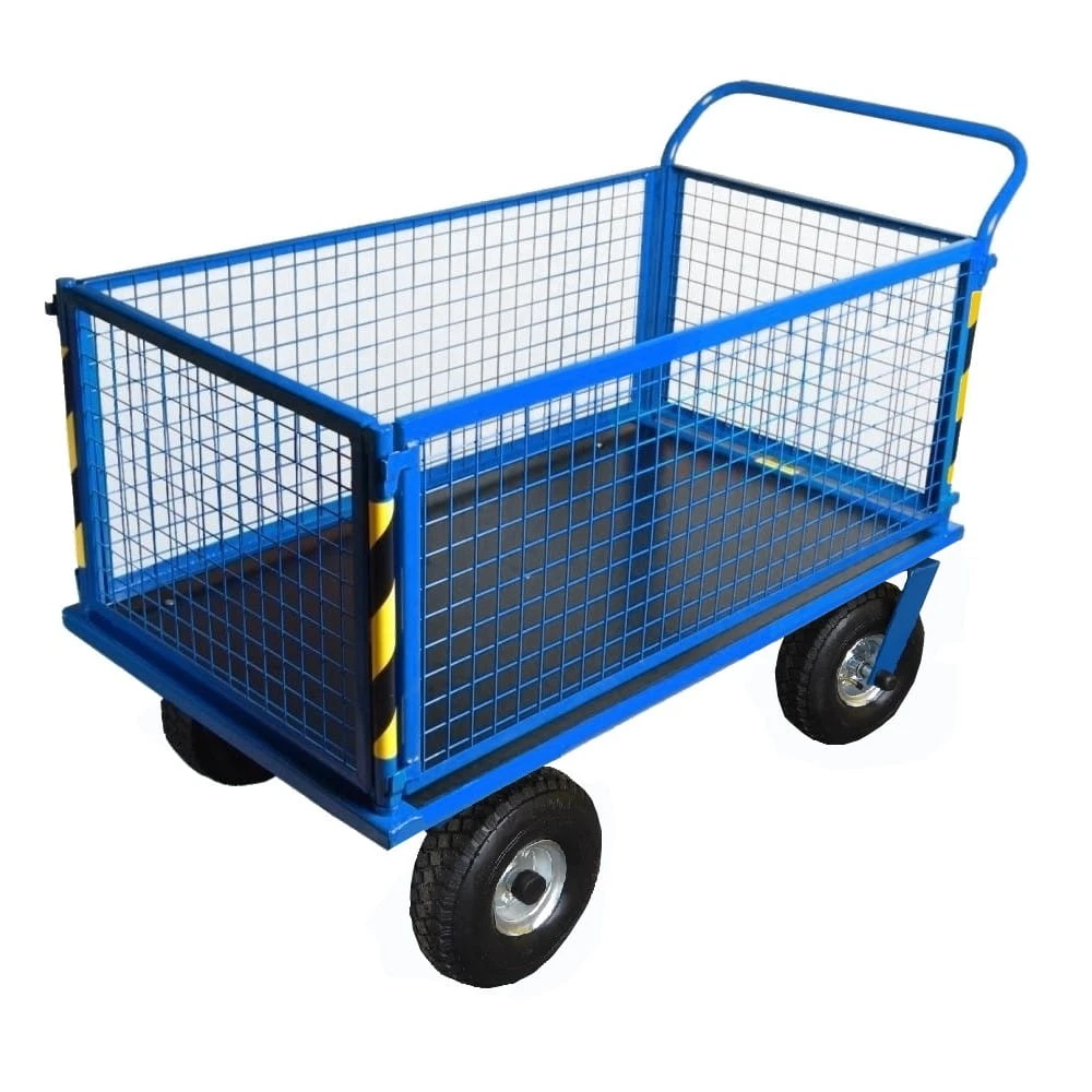 Wózek platformowy, gospodarczy, transportowy Stach IV zabudowany siatką.