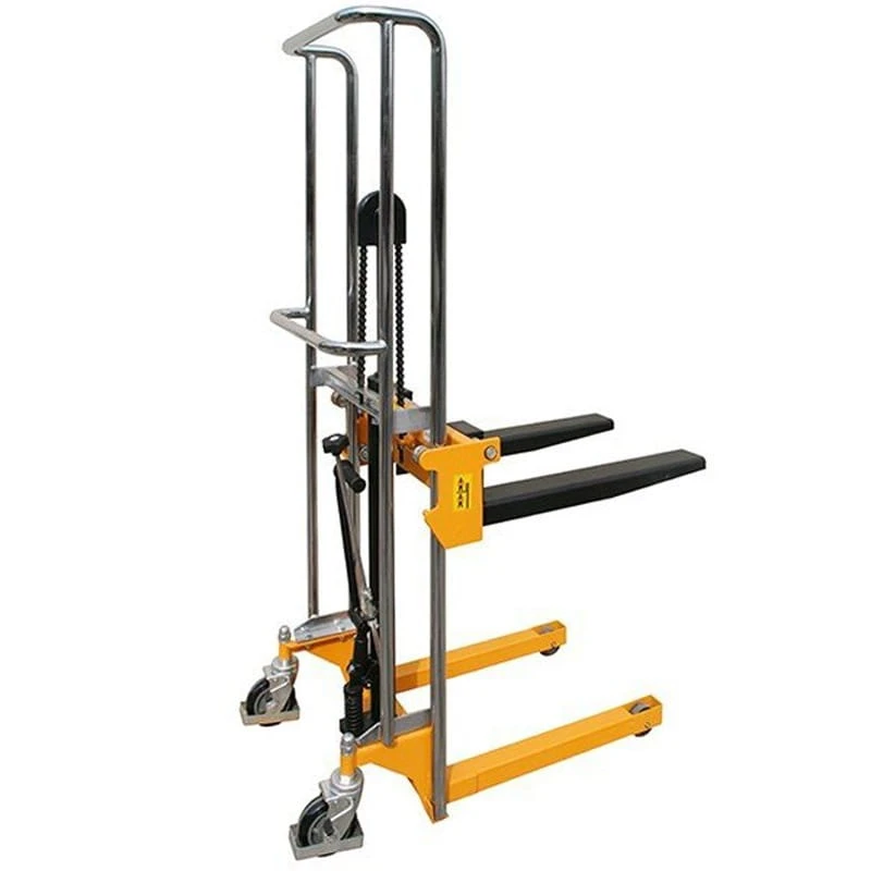 Hydrauliczny wózek podnośnikowy ręczny. Jedna z najmniejszych dostępnych sztaplarek.
