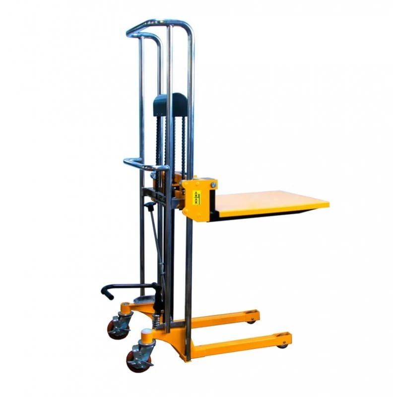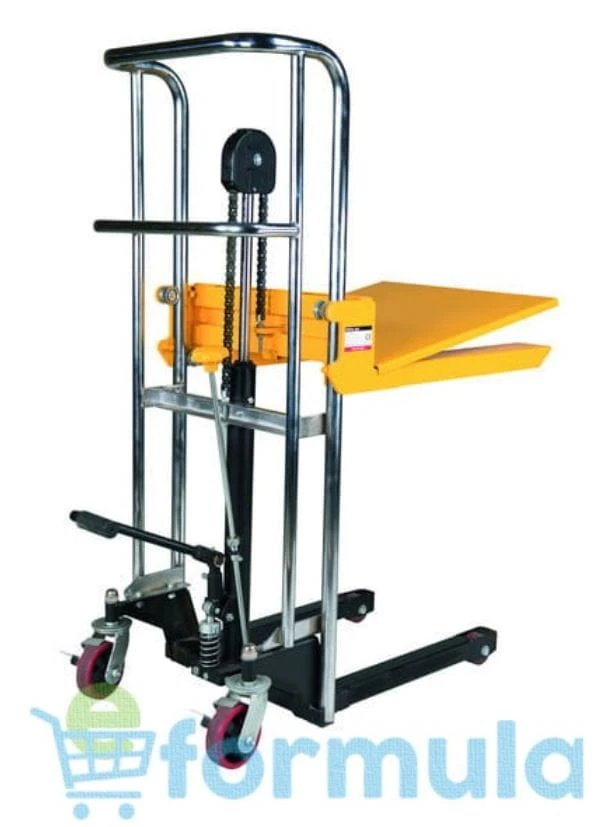 Maszt wykonany jest z wysokiej jakości stali, dzięki czemu zwiększa się sztywność konstrukcji i wydłuża żywotność. Widły podnoszone są pedałem nożnym.