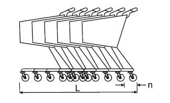 - Przyrost długości pakietu dla jednego wózka „n” - 150 mm