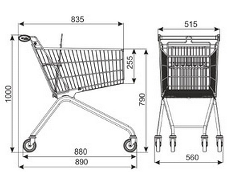 Wózek sklepowy z siedziskiem dla dziecka, o pojemności 75 litrów. Idealny dla sklepów 100-300 mkw.