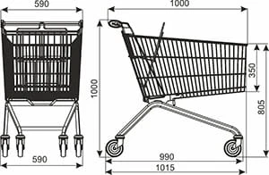 Wózek sklepowy z siedziskiem dla dziecka, o pojemności 151 litrów. Idealny dla sklepów 200-400 mkw.