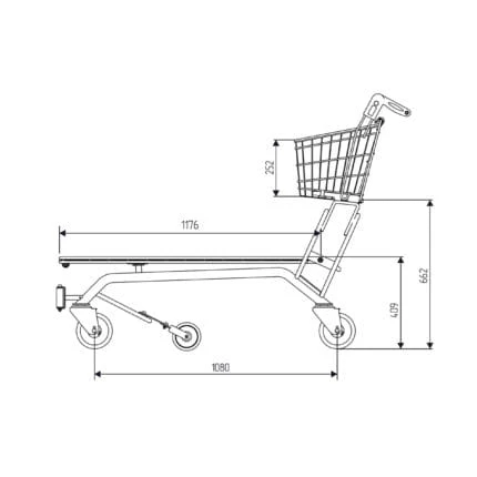 Wózek transportowy do sklepów budowlanych i magazynów 60 Mec 500 z krótkim koszem górnym i platformą.