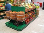 Wyspa na warzywa i owoce na bazie regały typu gondola o wysokości 130-140 cm. Długość gondoli 2m + końcówka promocyjna + stolik pod wagę