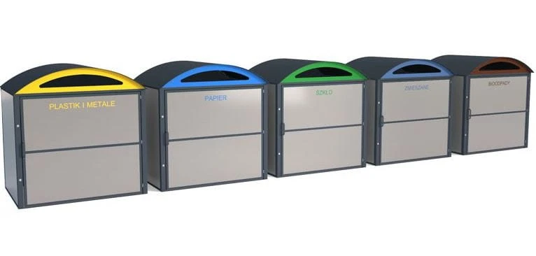 - kolor - RAL 7021 + RAL 9006, nazwy frakcji - wg kolorystyki przyjętego systemu do segregacji odpadów